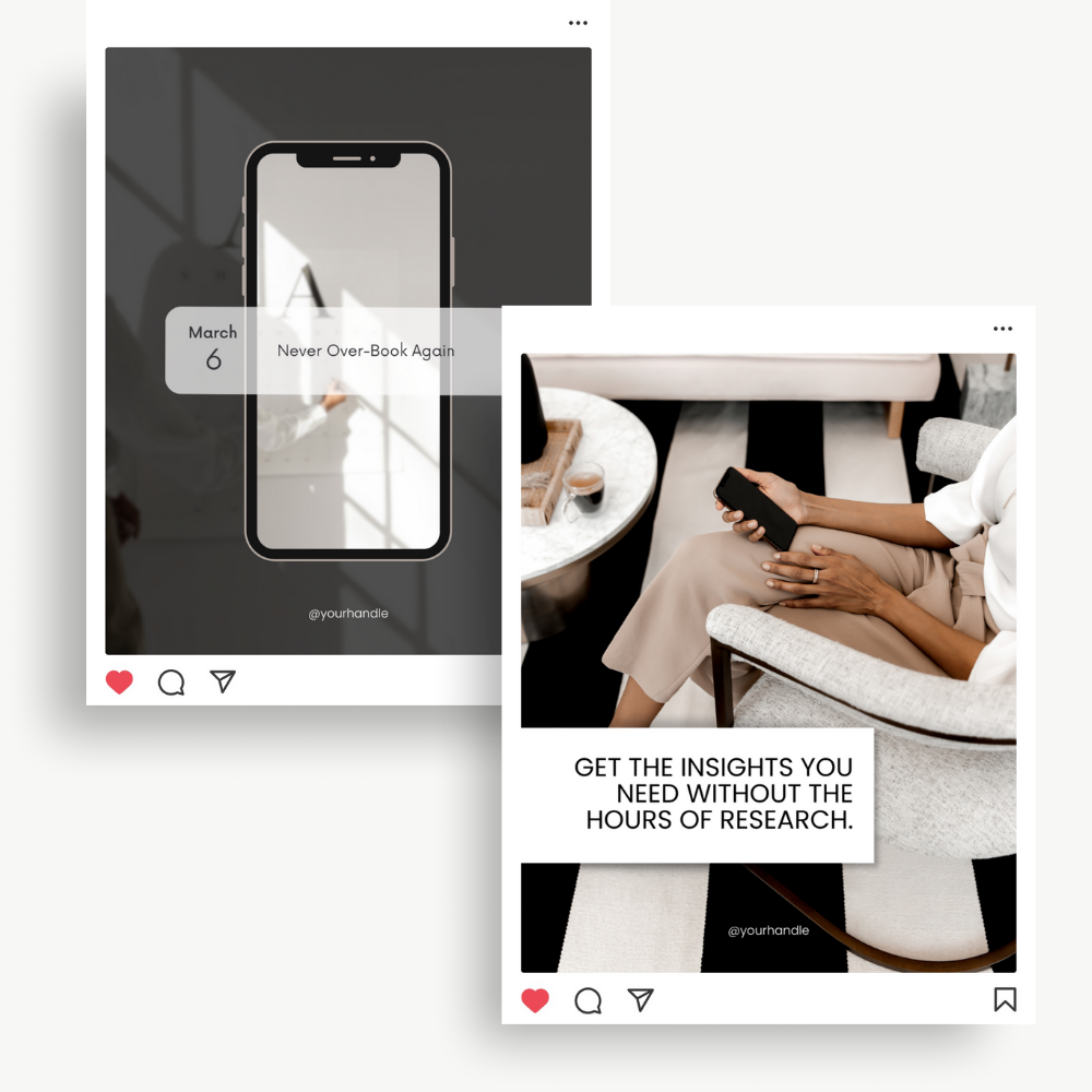 Multi-Platform Ready: Templates work across Instagram, Facebook, LinkedIn, Pinterest — one set of content, multiple places to show up.