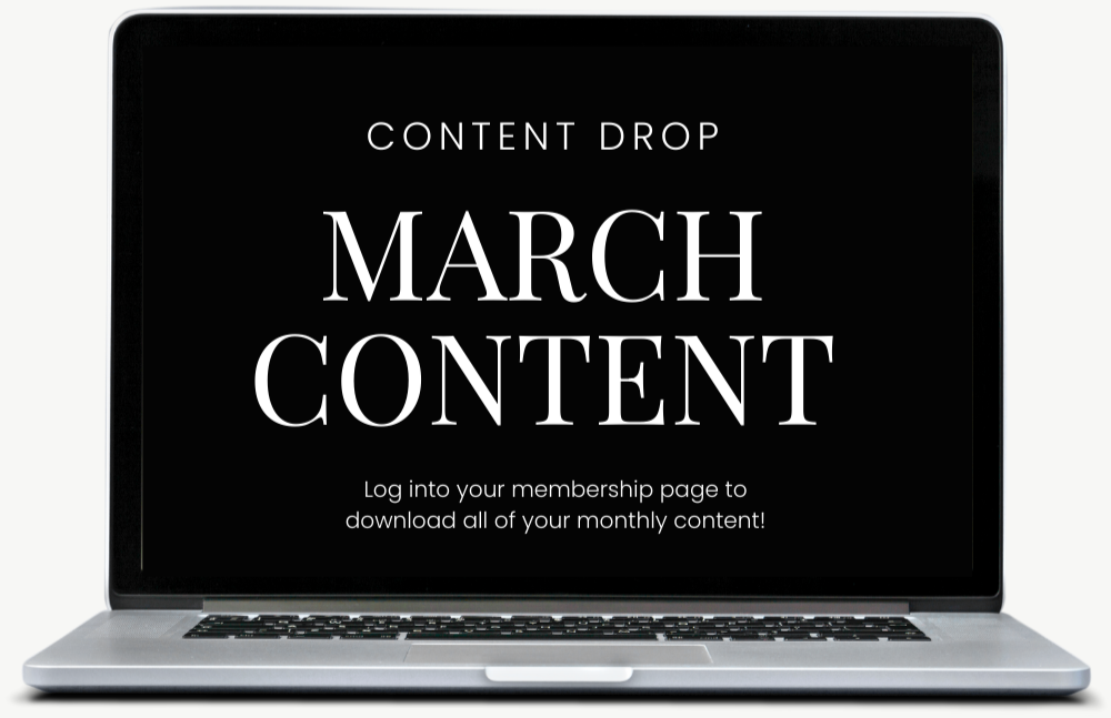 Every month, your content goes live in your membership portal on the third Thursday — log in, download everything, and you're ready to go.
