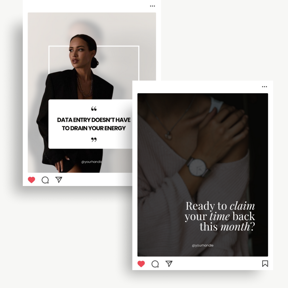 Simple, consistent feed content for VAs who want to stay visible without overthinking it. Get 20 monthly posts and captions delivered ready to customize.
