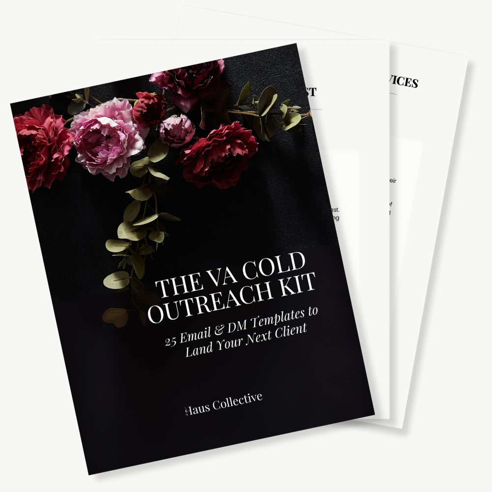 The VA Cold Outreach Kit offers 25 ready-to-use email and DM templates for reaching out to potential clients on LinkedIn, Instagram, Facebook, and through email. No more staring at a blank screen wondering what to say—customize, send, and follow up.